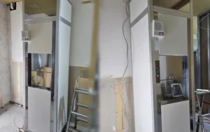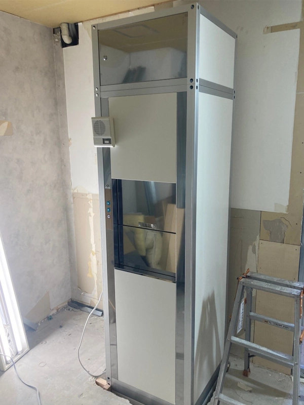 小荷物専用昇降機用の電源の準備が、単相200Vとの事で、お客様の要望に合わせ、仕様変更をしました。