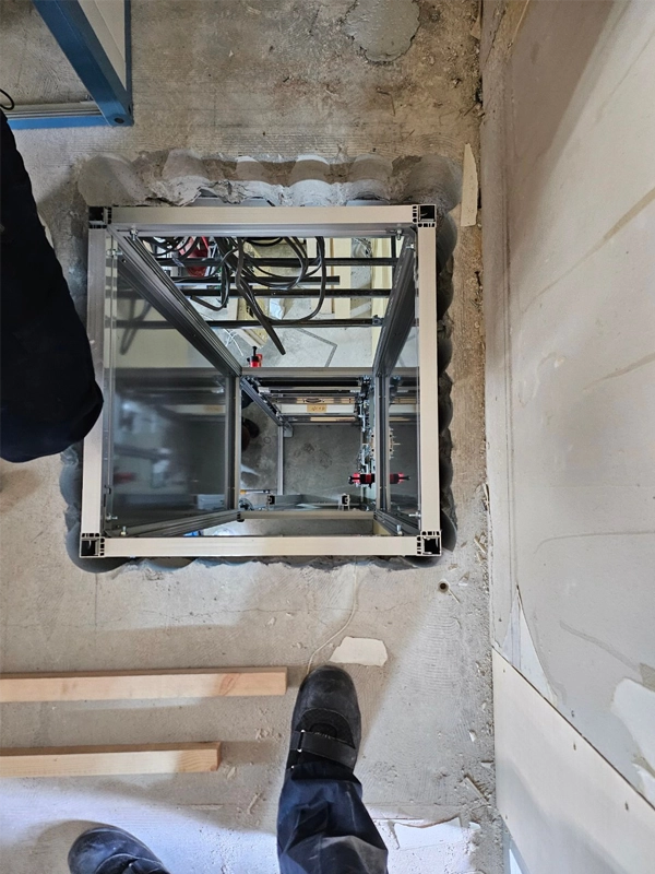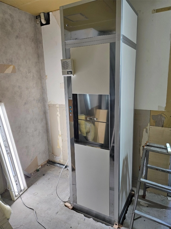 - 店舗スペースが限られていたのと、昇降機用の電源が単相200Vとの事で、仕様を変更しました(標準は三相200V)